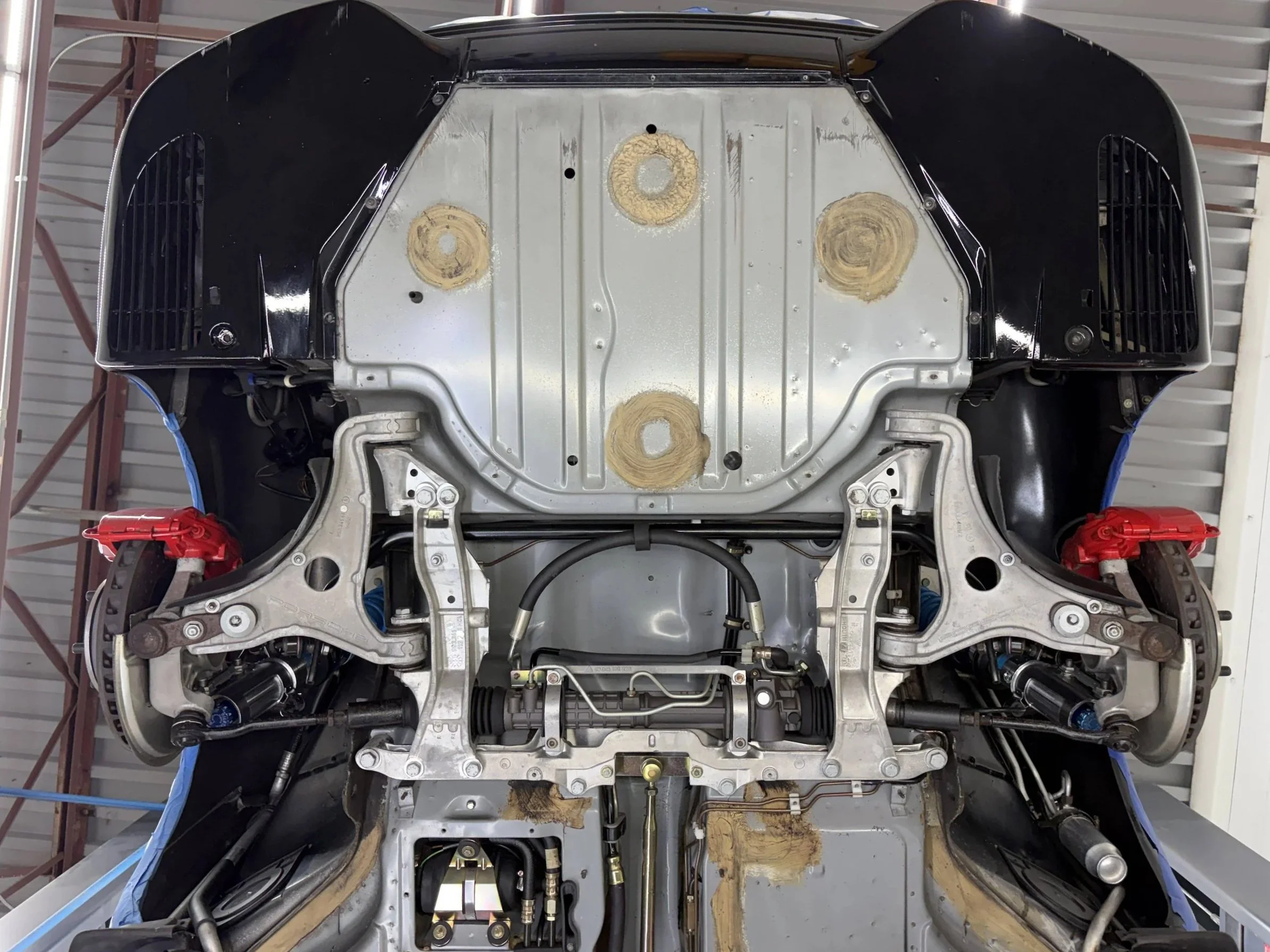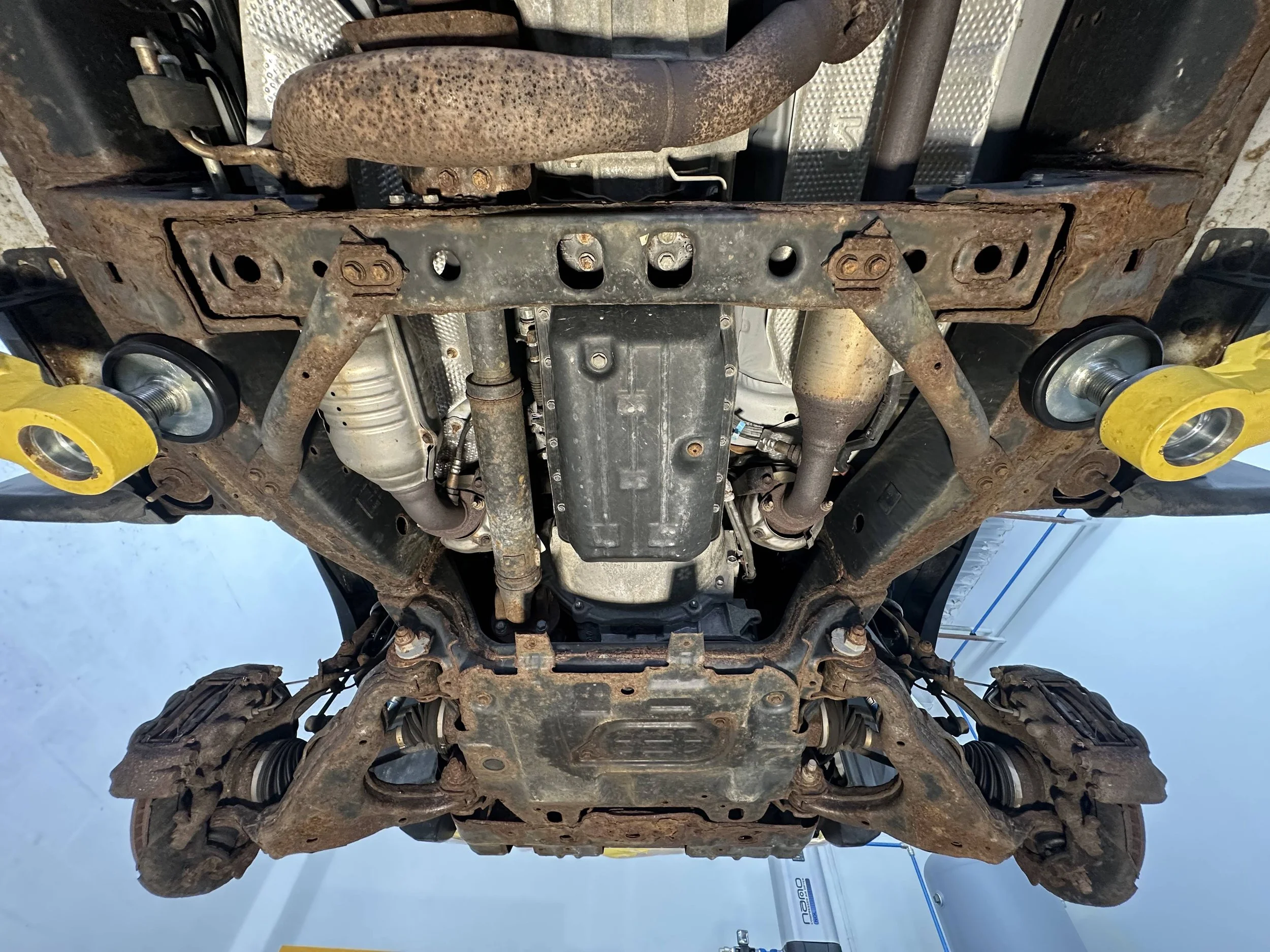 A “typical undercoating” is usually oil, wax, or rubber based, black in color, sticky, goopy, and just straight up gross! It is typically reapplied once a year to protect the chassis from rust caused by salt. It is visually unappealing and will make a mess when it’s time to service. Undercoating can also hinder the ability to detect leaks or any failed components.